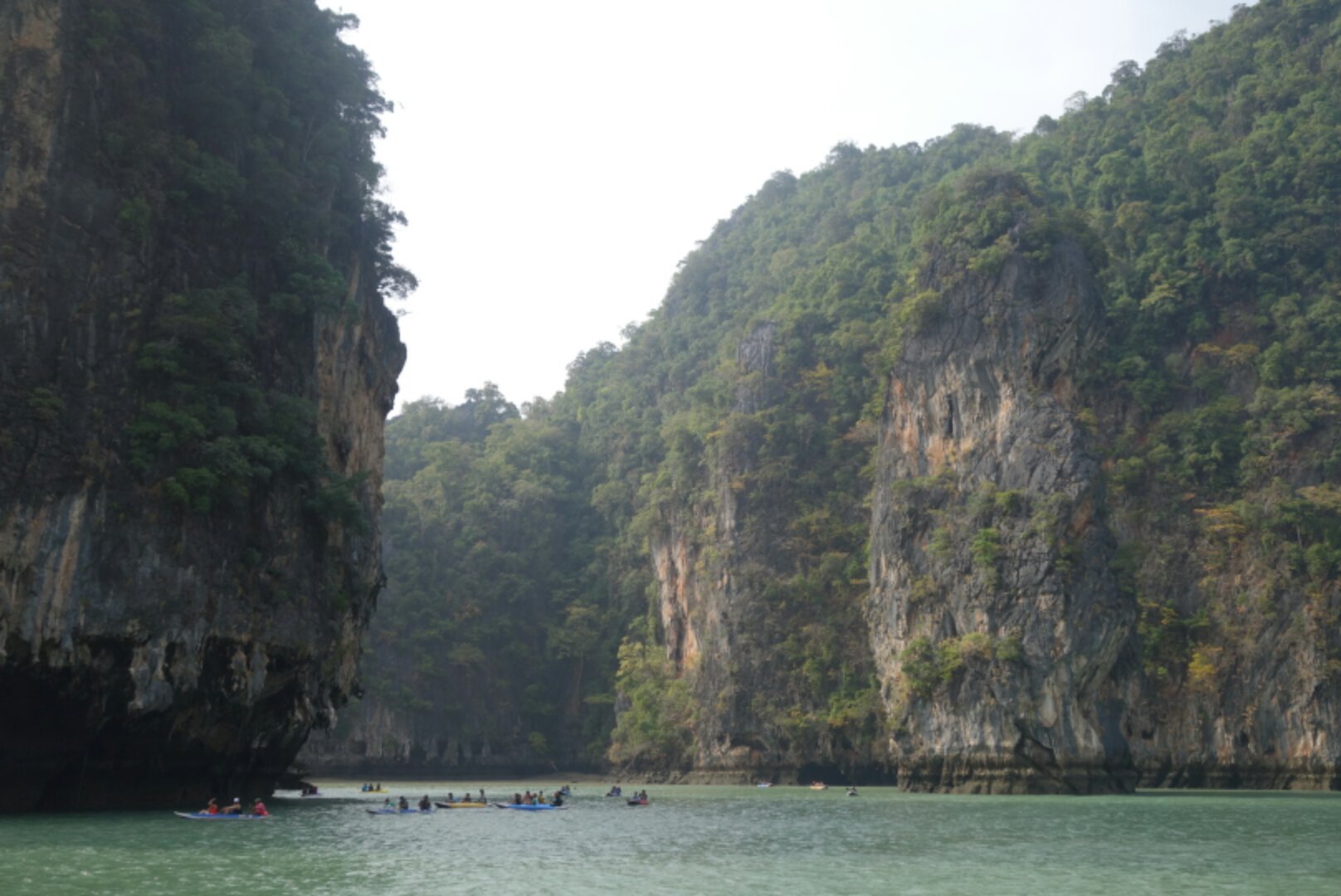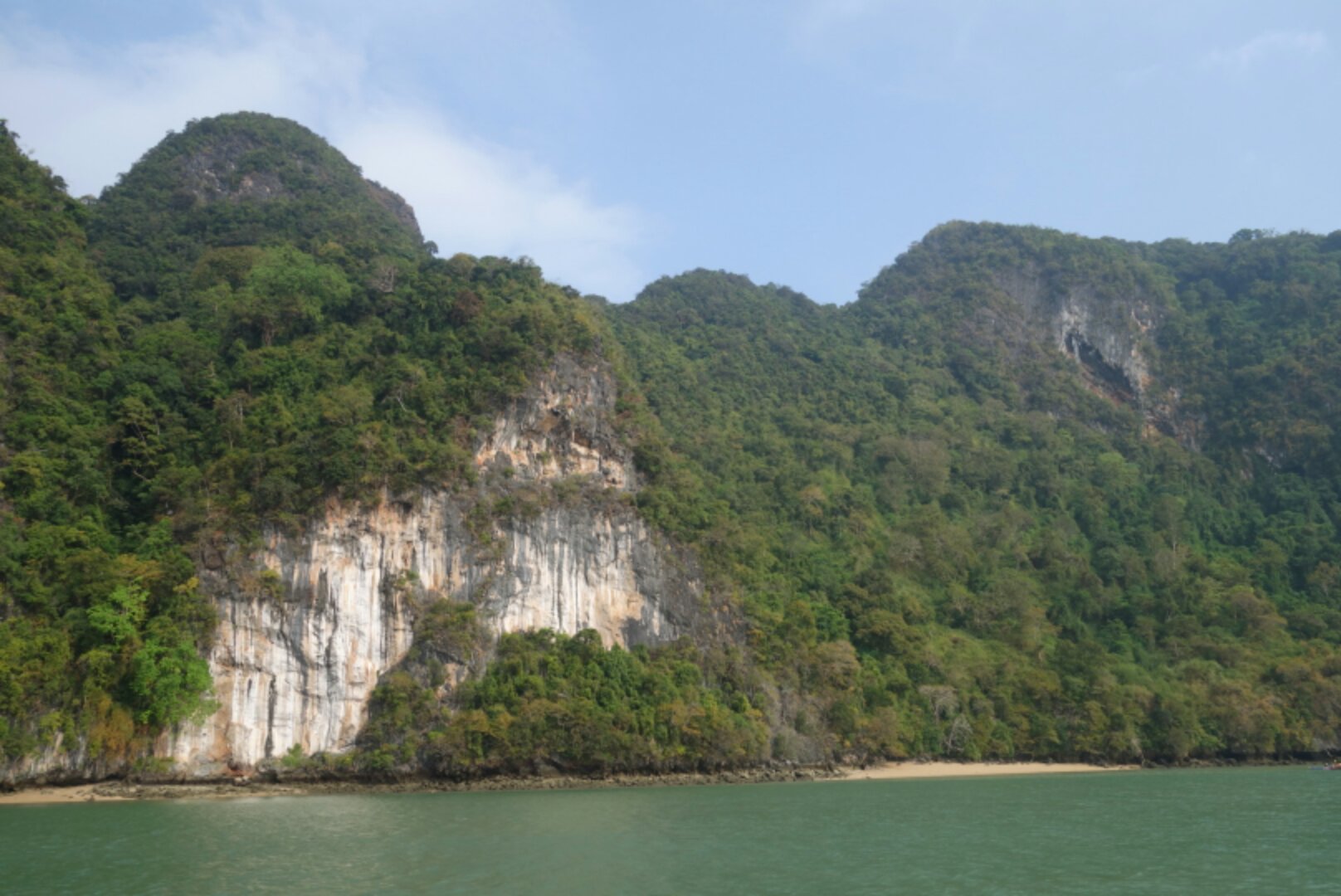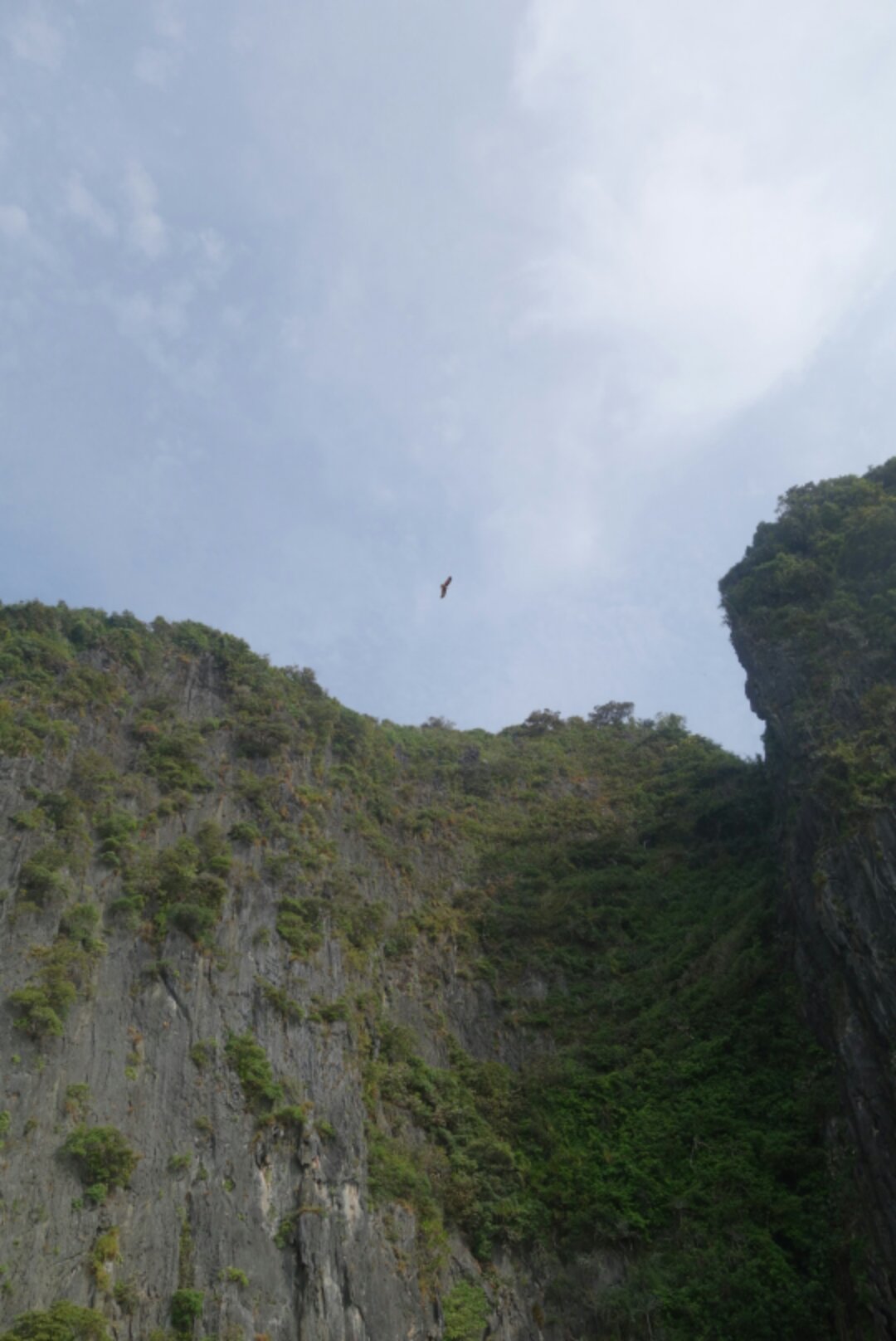OK so it’s not really called “Eagle Island,” but at this point we had seen 107,000 islands. This one had sea eagles that flew around the cliffs and dove into the water for fish. Hence, Eagle Island. It’s full of caves, and upside-down palm trees, and…eagles. The national park office for Phang Nga Bay is on this island. It’s that tiny hut on the small beach with the dog. I’m pretty sure the Jurassic Park theme song is playing like nonstop on their radio. Someone call Sam Neill!