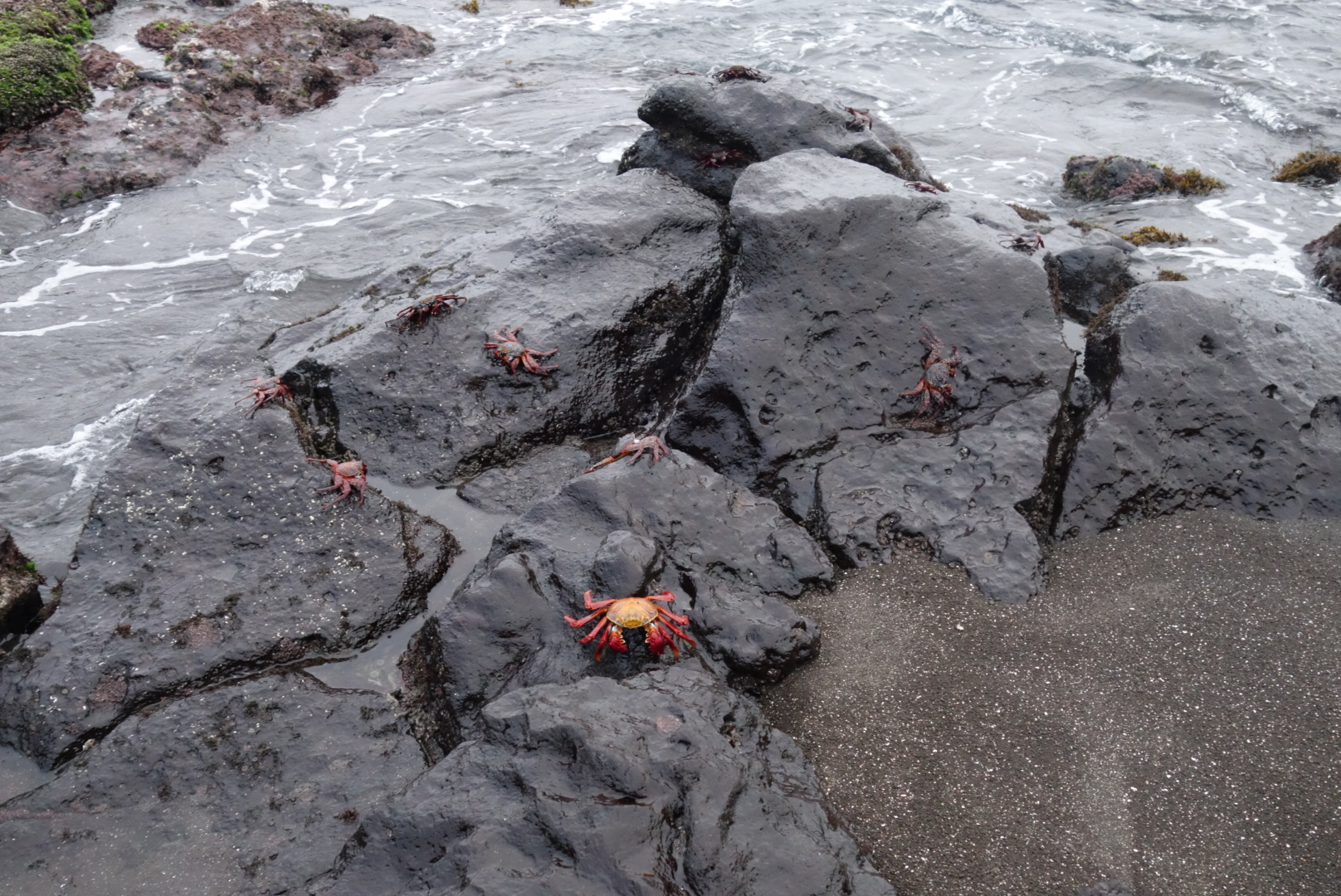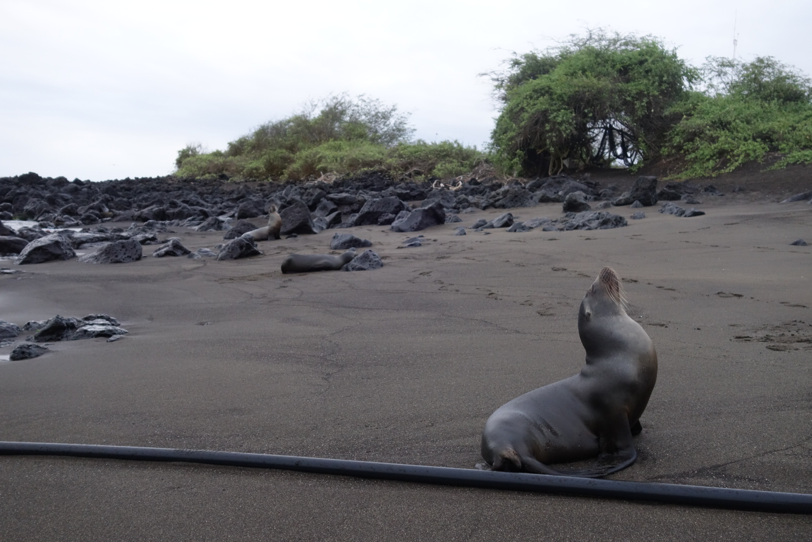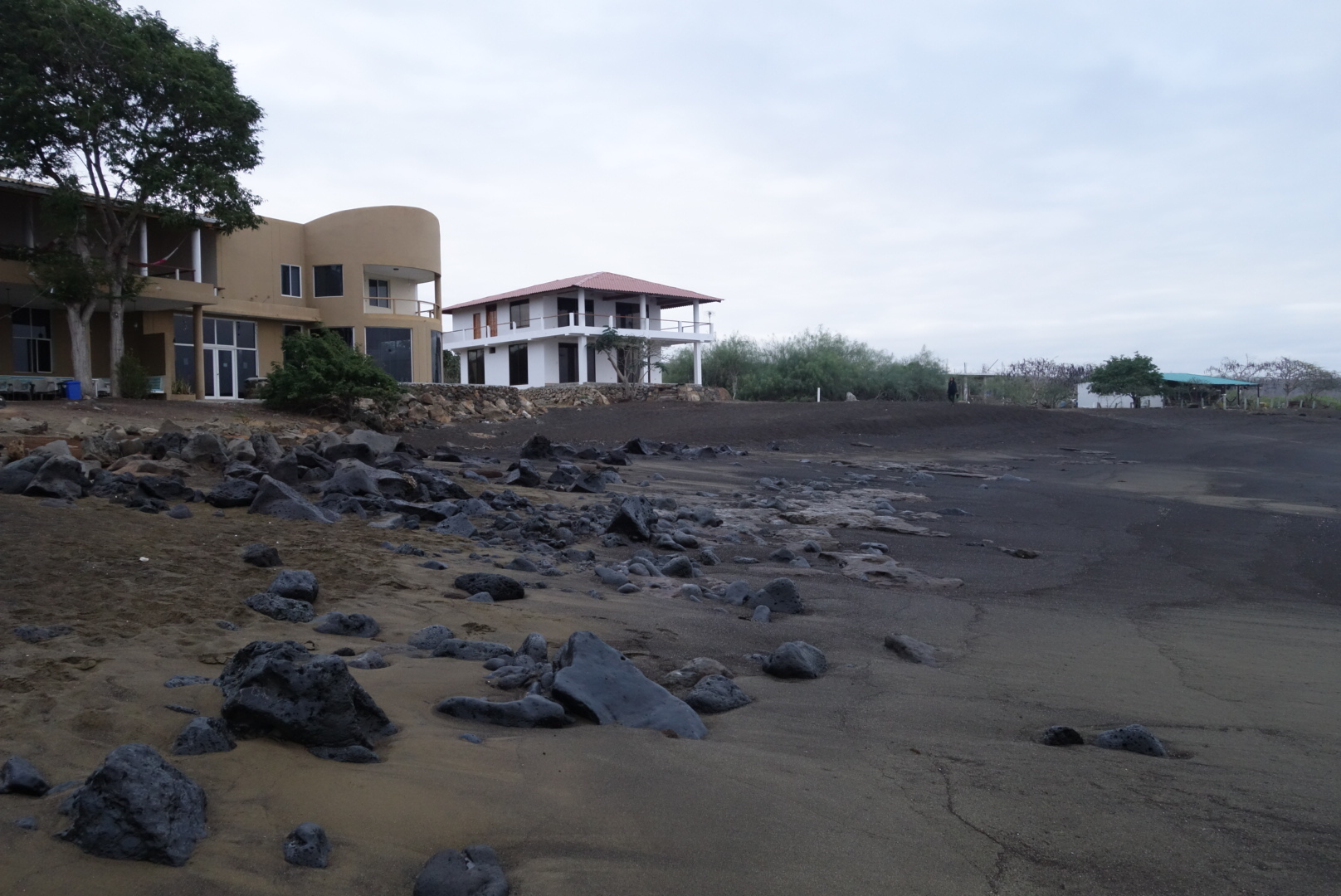 Waking up early after a long night out in Floreana (yes, there is such a thing as a “bar” on this 150-person island), we strolled along the black sand beach admiring the sun-gathering sea lions, crabs and marine iguanas. I’m including a few photos of our hotel (if you can call it that…what’s hot water?), the cute restaurant where our meals were served, and one of the many Siamese cats roaming around.