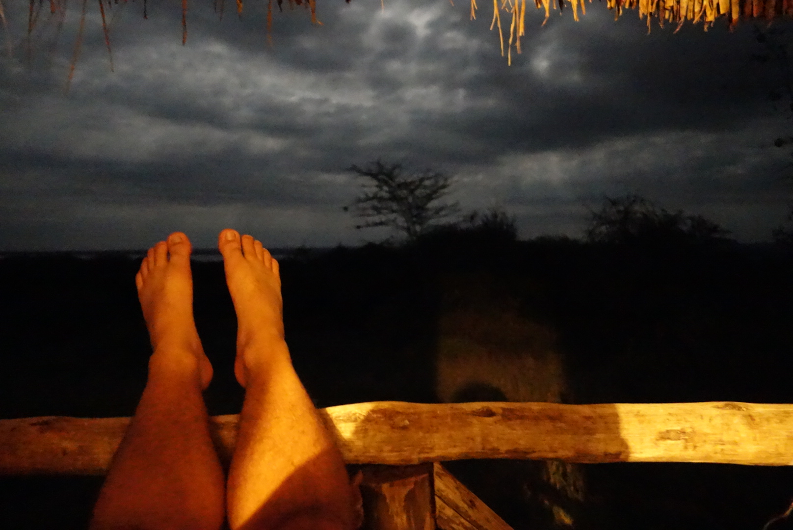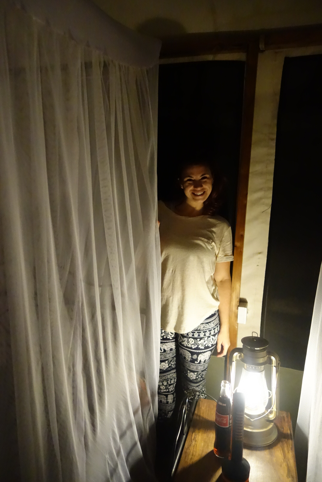 This was our second night and our first tent. I would describe it as glamping. Three comfy beds with nets, a mostly real bathroom with some hot water, and a lovely balcony with views of