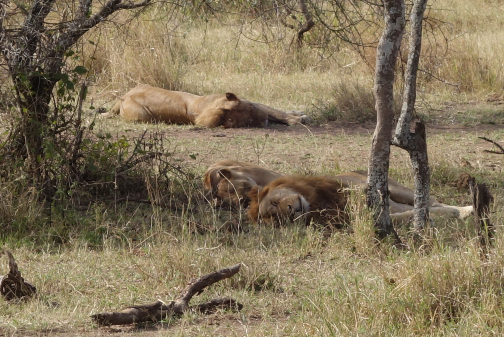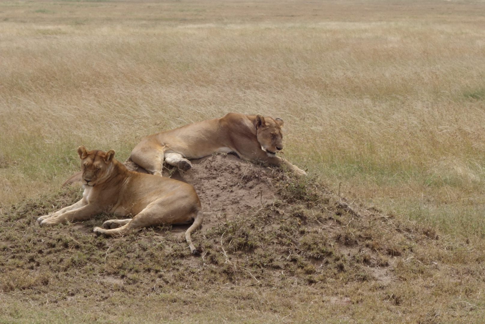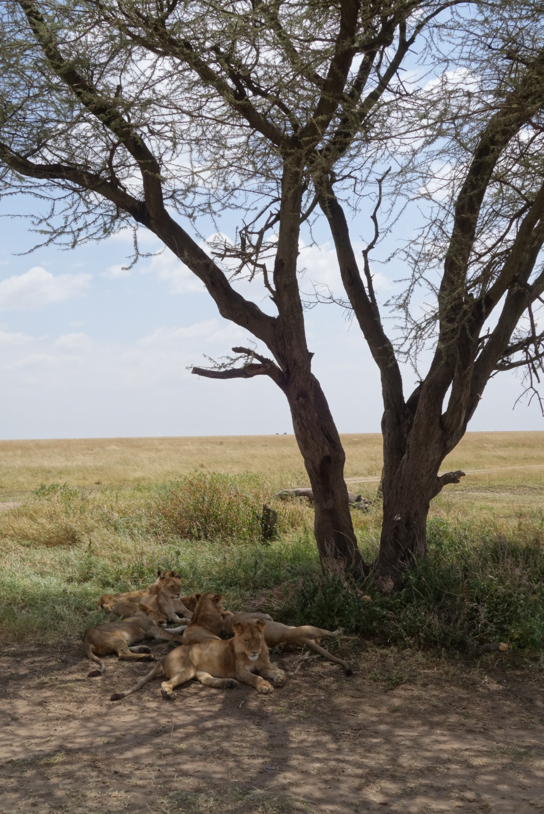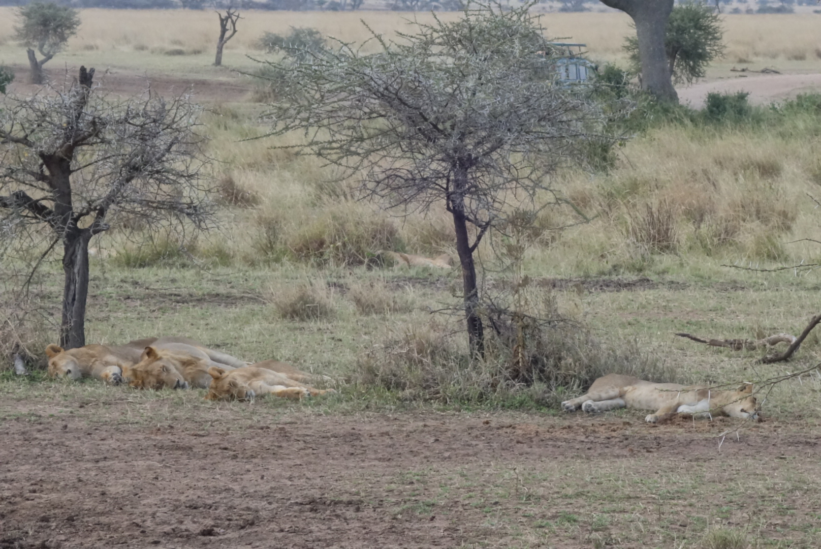 Lions are very sleepy. It’s amazing now much they remind you of house cats. I mean, my cats look like these lions 80% of the time. We saw in the neighborhood of 35 lions, and most were on the final day in the Serengeti when we saw at least 3 prides. The huge male that you can see standing facing left came from the distance, crossed the pond, went right up to our car, paused, and then walked on. We all got silent. Needless to say the windows and doors were shut tight. They can go 4-5 days between meals. They like trees, dirt hills, and shade. All great places to sleep as you can see.