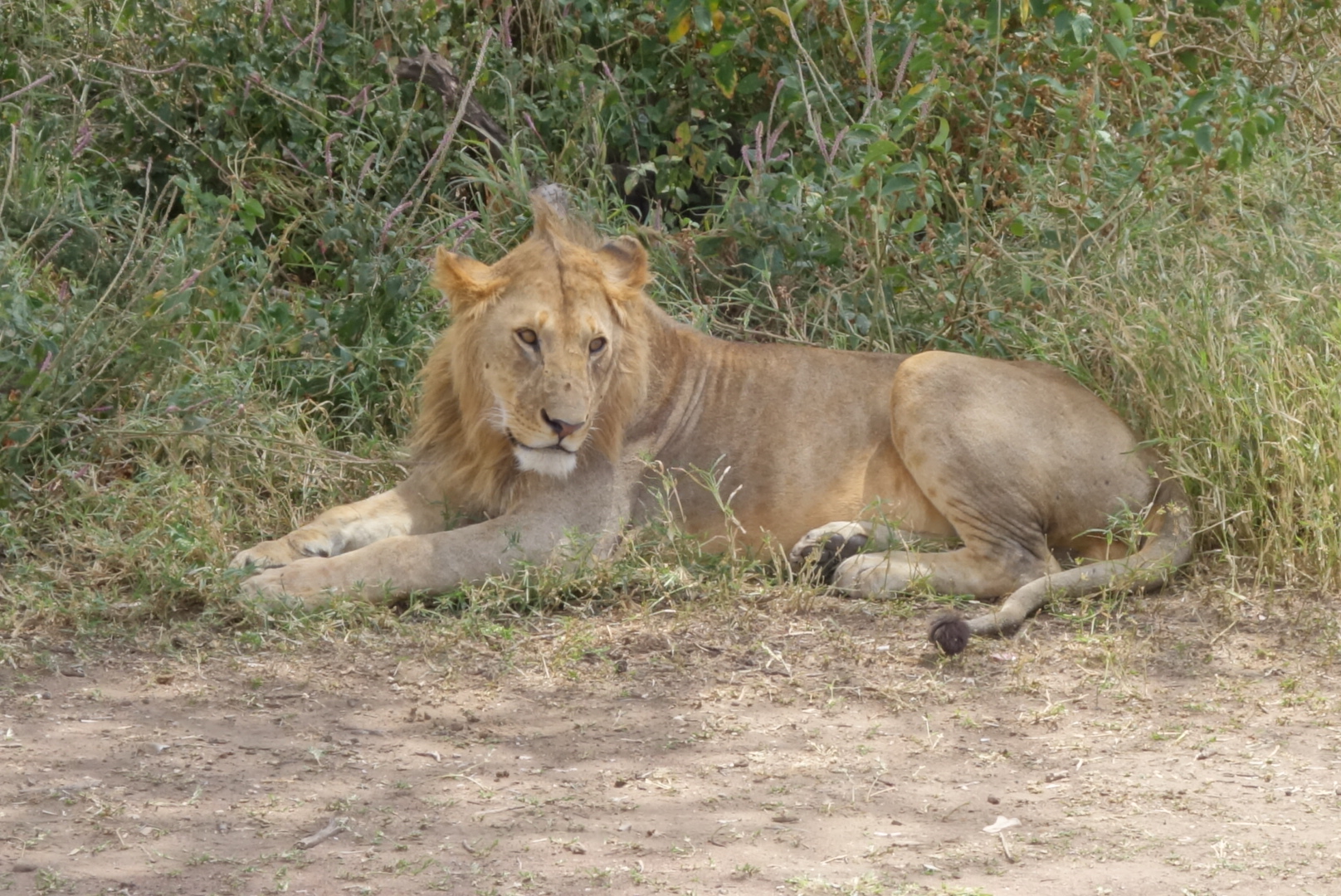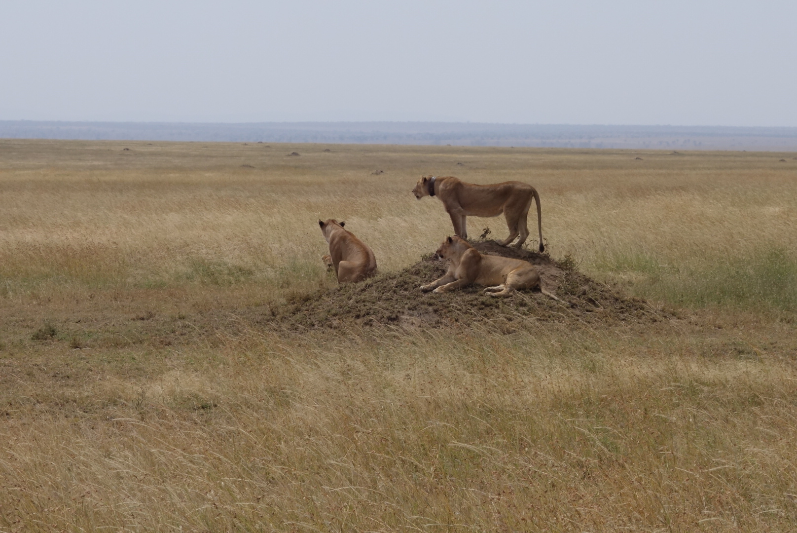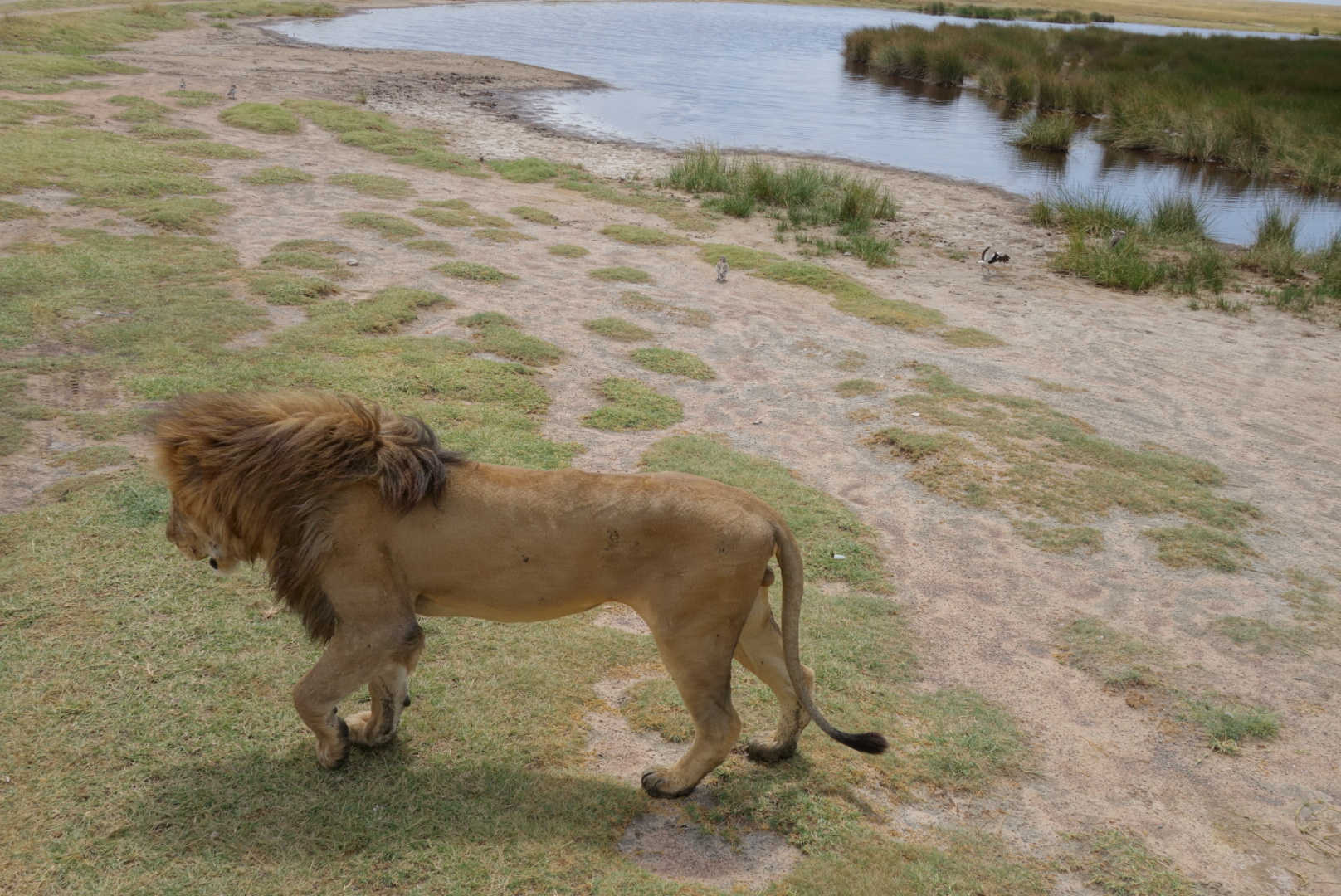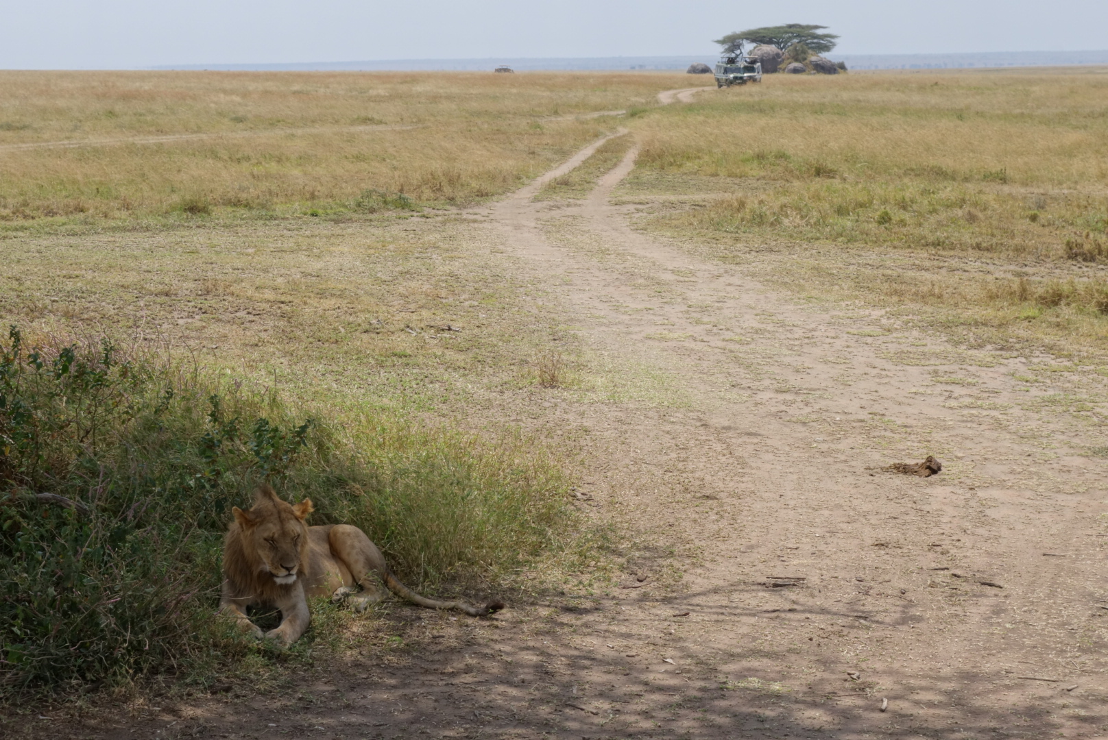 Lions are very sleepy. It’s amazing now much they remind you of house cats. I mean, my cats look like these lions 80% of the time. We saw in the neighborhood of 35 lions, and most were on the final day in the Serengeti when we saw at least 3 prides. The huge male that you can see standing facing left came from the distance, crossed the pond, went right up to our car, paused, and then walked on. We all got silent. Needless to say the windows and doors were shut tight. They can go 4-5 days between meals. They like trees, dirt hills, and shade. All great places to sleep as you can see.