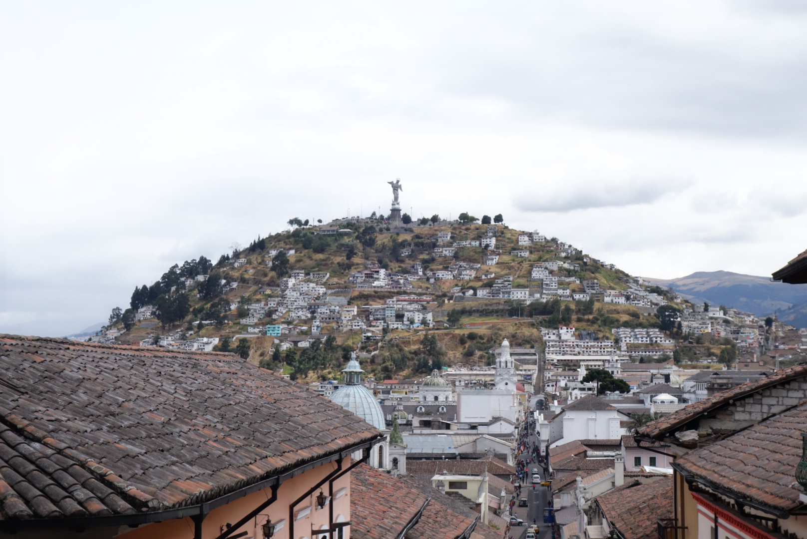 Pim’s is an old restaurant on the side of Panecillo with a spectacular view of the city and surrounding volcanoes. Included with our tour bus tickets was a coupon for the house cocktail, which none of us could identify. It was blended. There was maybe cinnamon in it? Google was no help. Then the table started to shake, and we realized it was an earthquake. Unbeknownst to us at the time, people were killed/injured in a landslide. You can actually see some dust clouds in these photos, though I don’t think that landslide was near us. The food was good and cheap. Also, Layla finally got her fries, and they were $1.65.
